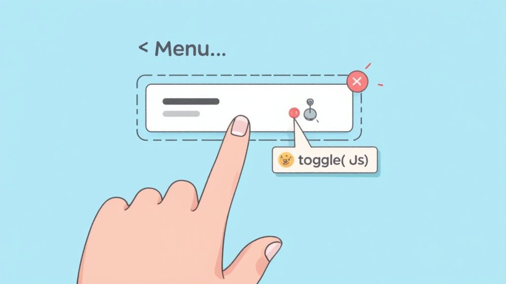 Alright, with the HTML structure in place, it's time for the fun part: bringing it to life with JavaScript. This is where we go from a static layout to a component that actually does something. The magic here is all about listening for a user's click and then smartly toggling the menu's visibility.