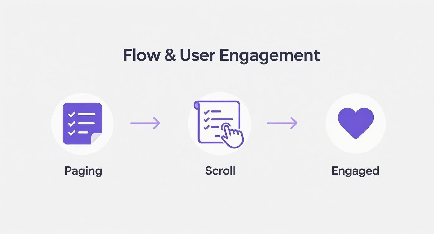 This simple flow shows how ditching distinct "next page" clicks for a smooth, continuous scroll keeps people absorbed in your content.