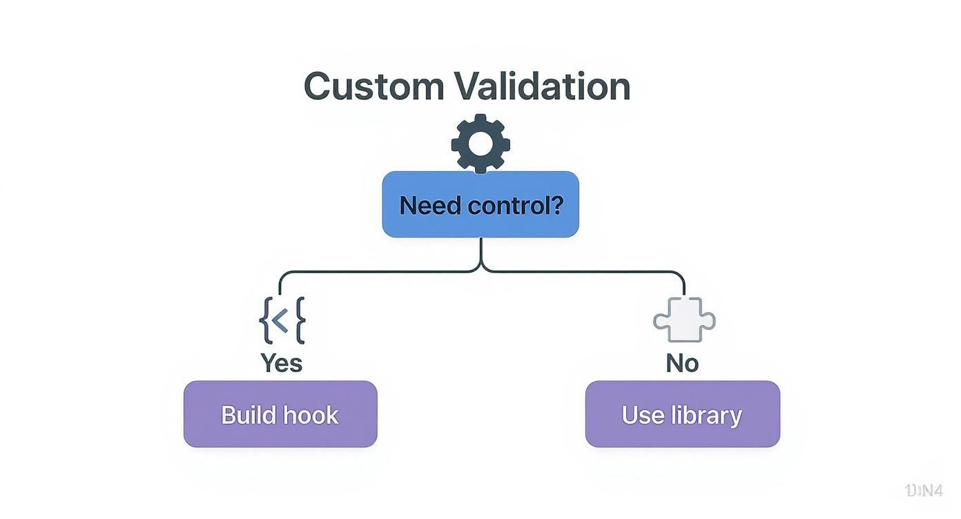 Deciding whether to roll your own custom hook or grab a powerful library is a classic developer dilemma. This visual guide can help clarify which path to take based on your project's needs.