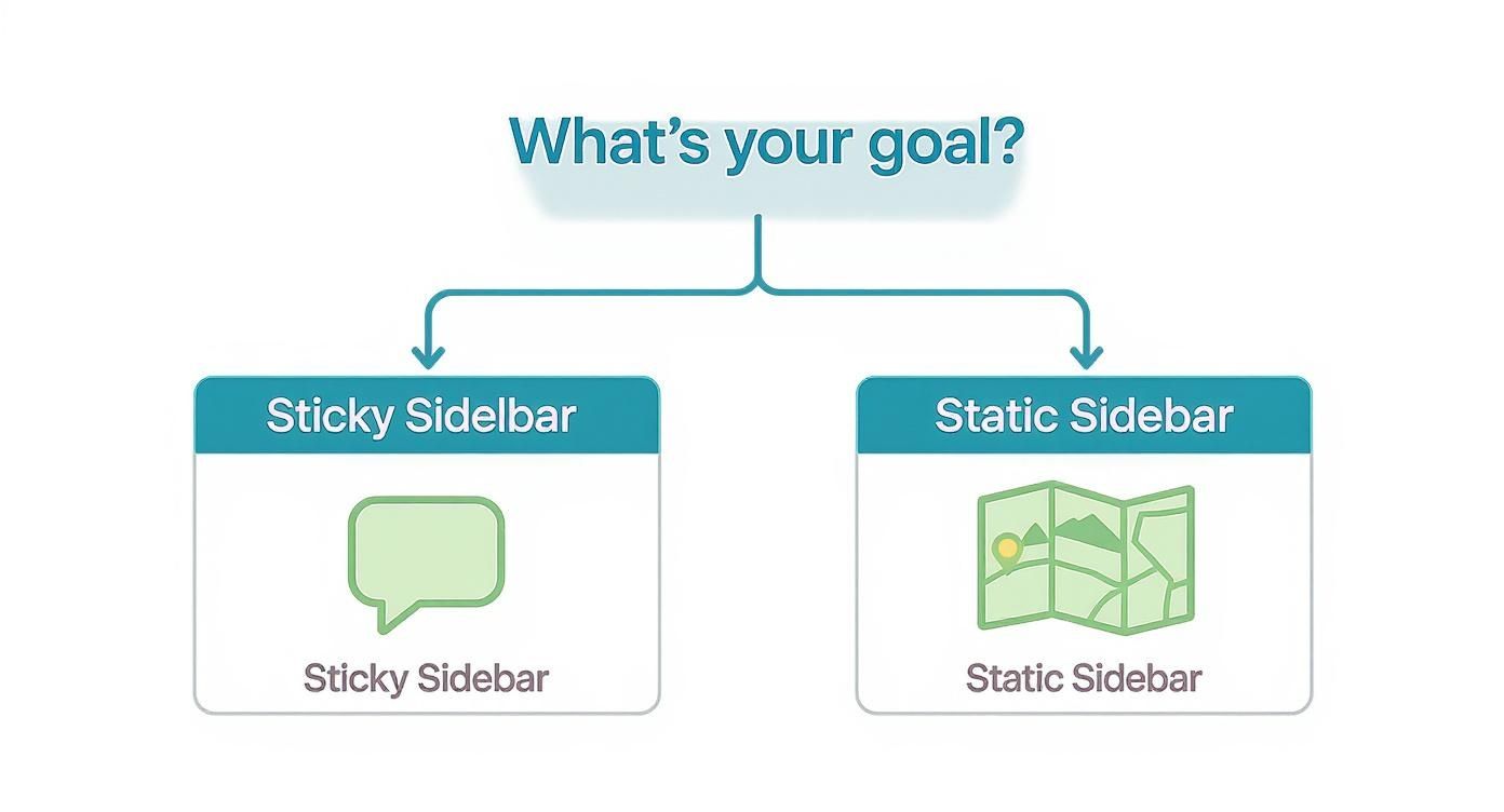 Not all sidebars are built the same. The type you choose should directly support what you want your website to achieve, whether that's keeping users hooked on your content or simplifying navigation through a complex site. The two most common approaches are static and sticky sidebars.