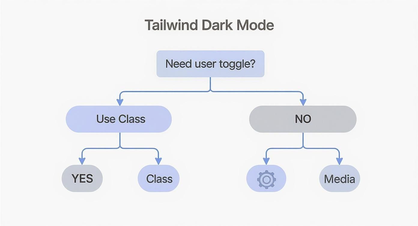 Implementing dark mode in Tailwind boils down to two clear paths: the automatic media route that follows the user’s system setting, or the manual class route that hands control over to your UI. Picking the right one here shapes everything that follows in your theme setup.