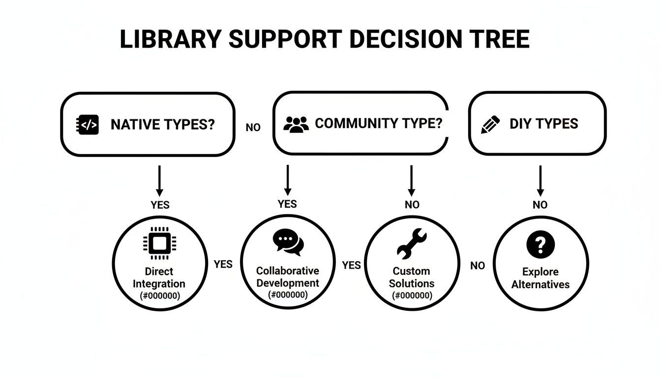 To help you visualize the path forward, especially regarding dependencies, here’s a decision tree. It helps you think through whether the libraries you need have native types, community-supported types, or if you'll need to roll your own.